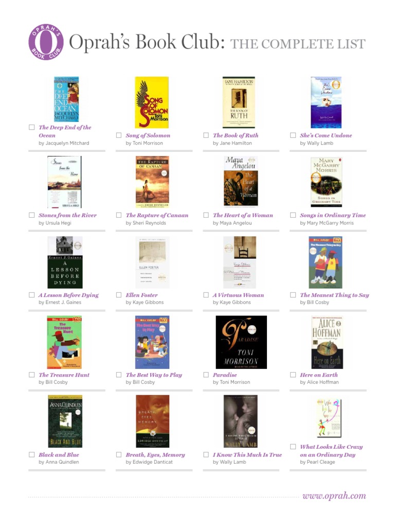Complete List Of Oprah S Book Club Books