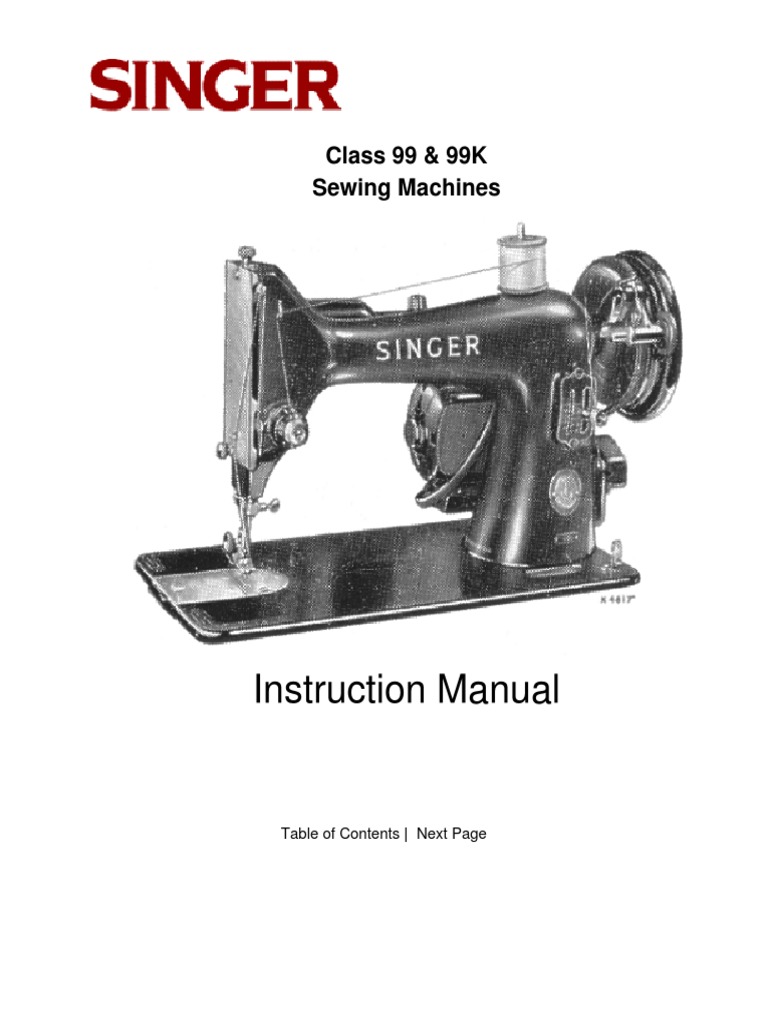 Singer 1950s Sewing Machine Manual Class 99 99k Sewing Machine